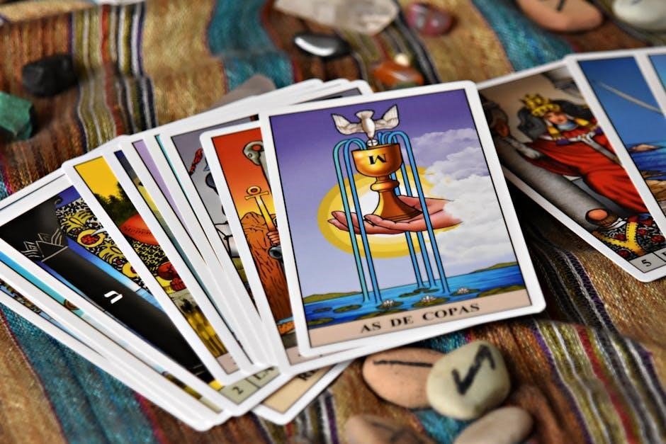 Each card embodies a universal theme, such as The Fool’s journey of new beginnings, The Magician’s manifestation power, The High Priestess’s intuition, and The Empress’s nurturing energy․ Understanding these core themes is crucial for interpreting the broader narrative of a reading․